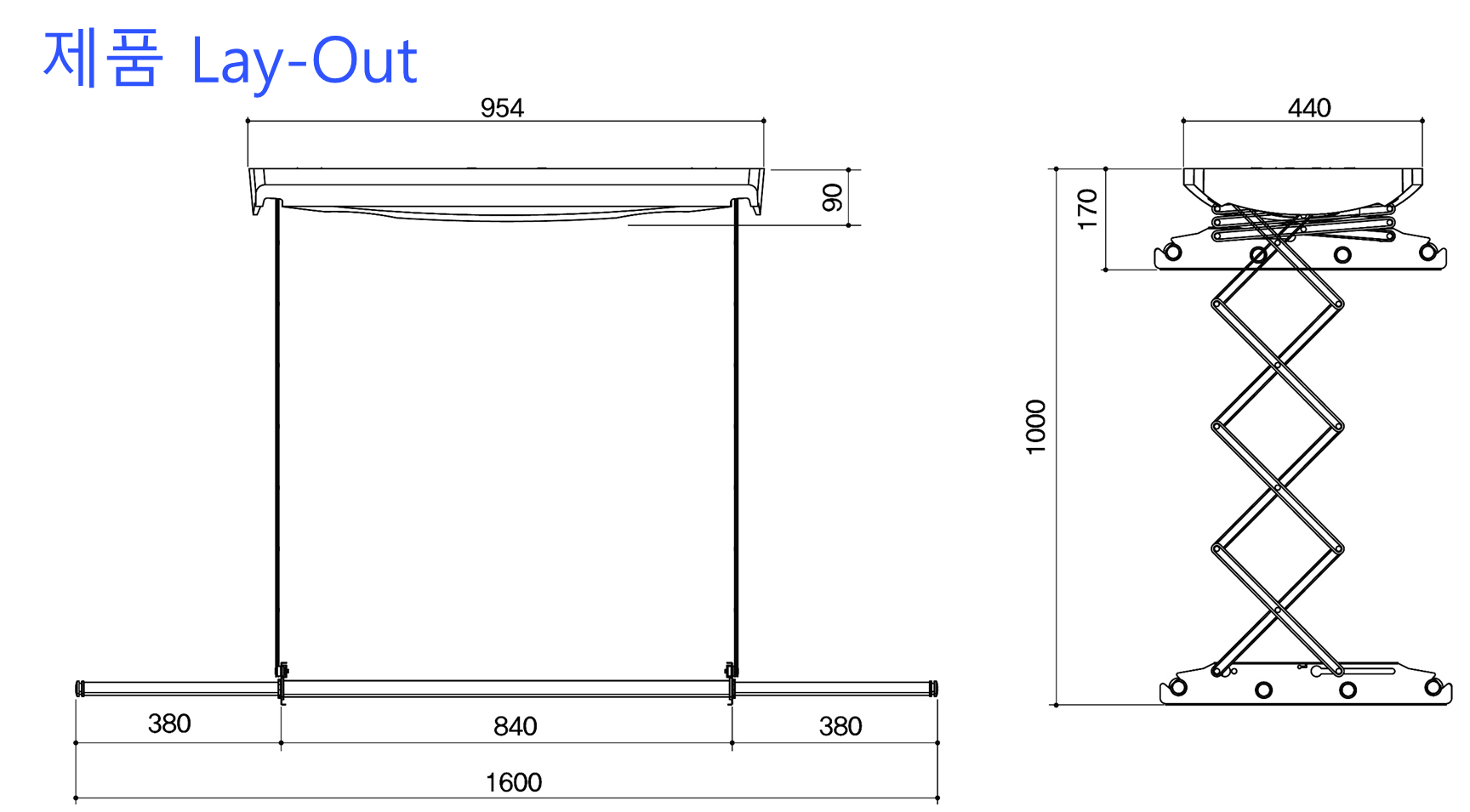 건조봉길이 : 주봉840mm, 보조봉 380mm