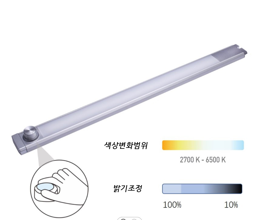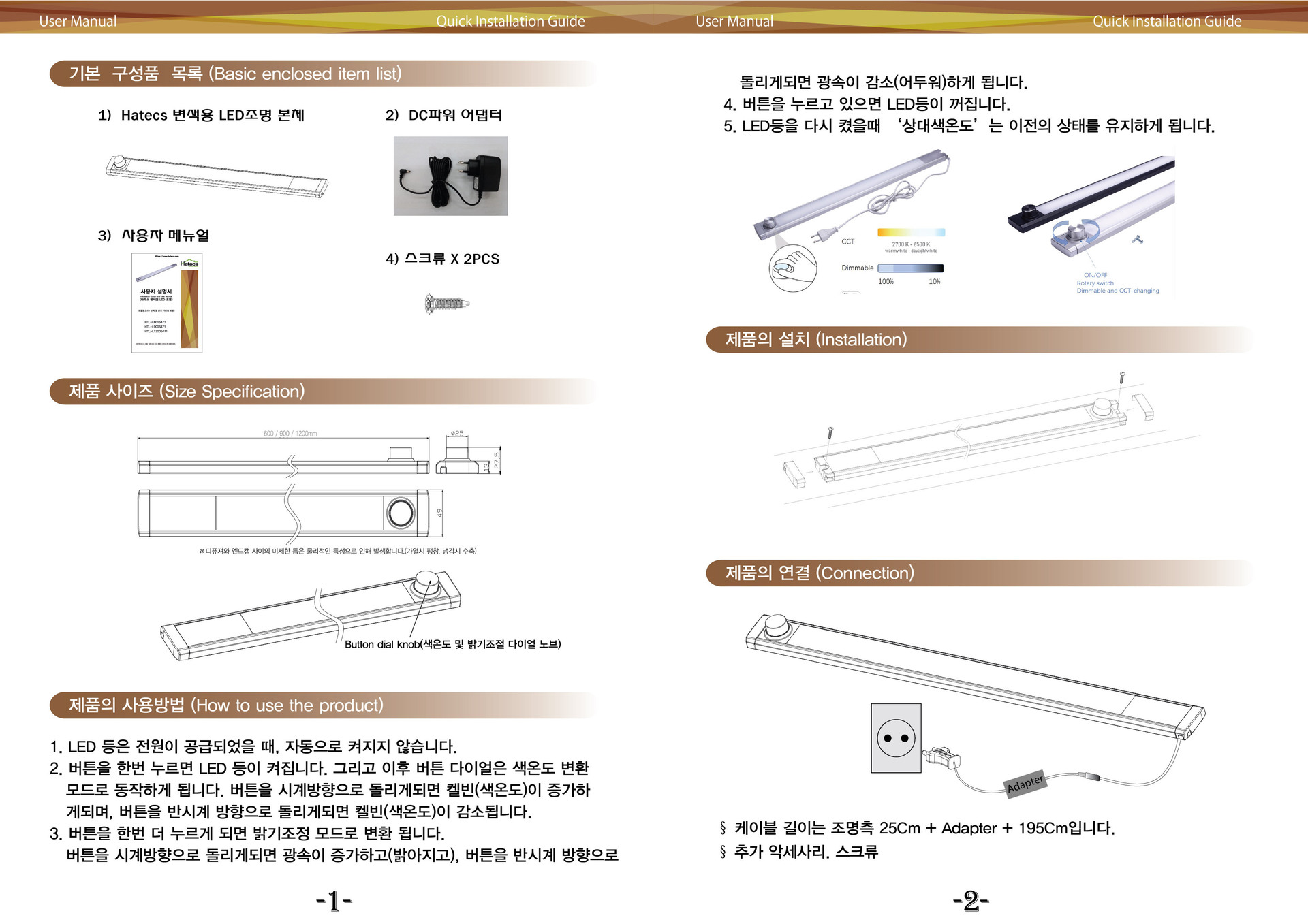 색의 온도와 밝기의 다이얼 조절이 가능하며, 시공 위치를 자유롭게 선택 가능한 DC 어댑터 기반 변색 LED 조명입니다.