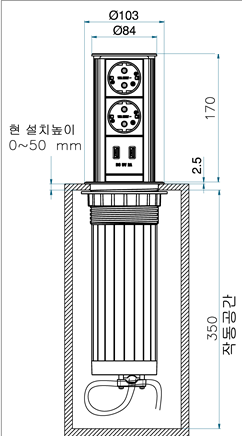 - 제품 사이즈 : 매립하부(350mm) 상부(170mm)