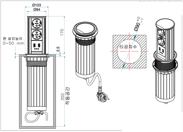 - 상판 타공 사이즈 : 90 Ø