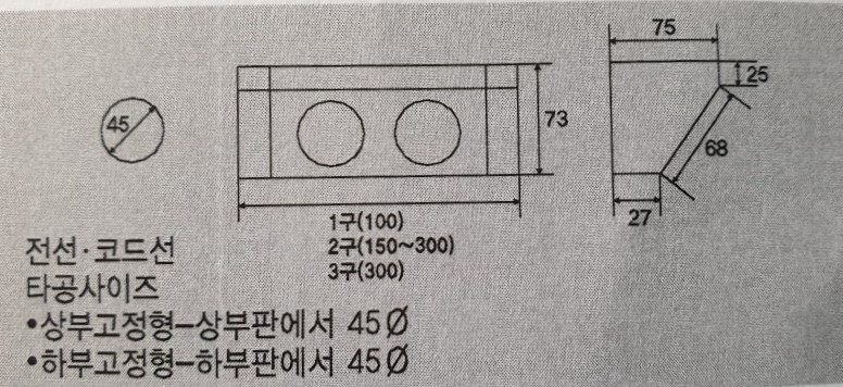 - 전자렌지, 밥솥장, 욕실장외 가구하부에 부착하는 콘센트