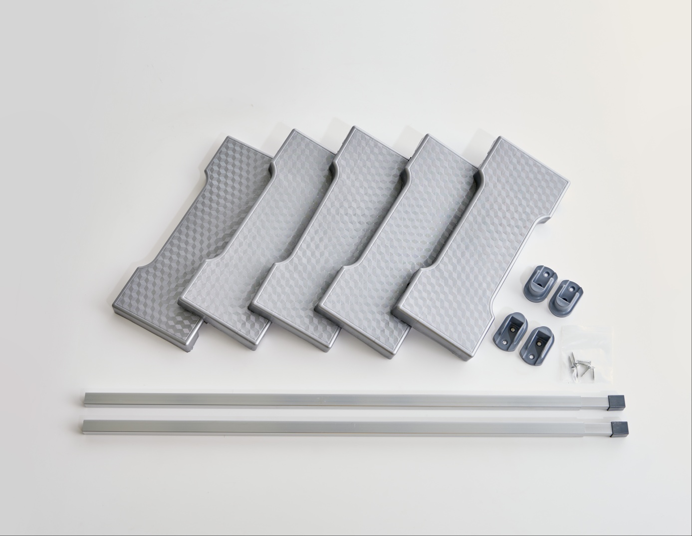 구성품 : 알루미늄사각지지대2개 / 사출선반6개 / 고정사출4개 / 조립피스8개