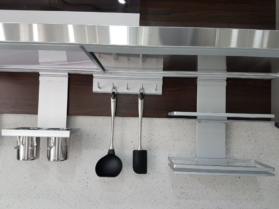 - 주방 상부장의 하부에 각종 조리용품, 식기, 컵등을 수납하는 제품을