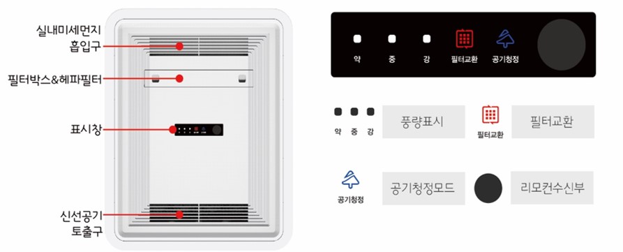 - 실내 미세먼지 상태 및 필터교체시기 알림 기능
