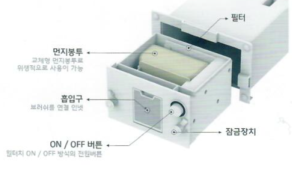 에어브러쉬를 이용하여 흡입 제거함으로 오염된 먼지가 실내로 유입되는